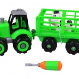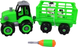Ez a csavarozható traktor utánfutóval nagyszerű játék a 3 évesnél idősebb gyerekek számára. Vonzó kialakításával lenyűgöz és szórakoztat. A gyerekek össze- és szétszerelhetik a traktort és az utánfutót, ami segíti a finom motorikus készségeik fejlesztését.