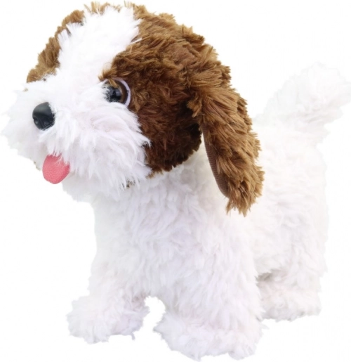 A sétáló plüsskutya ideális játék a 3 év feletti gyermekek számára. Készült puha plüssből, így kellemes tapintású. Funkcióinak aktiválásához elég megnyomni a fején lévő gombot, és a kutya mozogni kezd, ugat és vidáman csóválja a farkát.