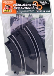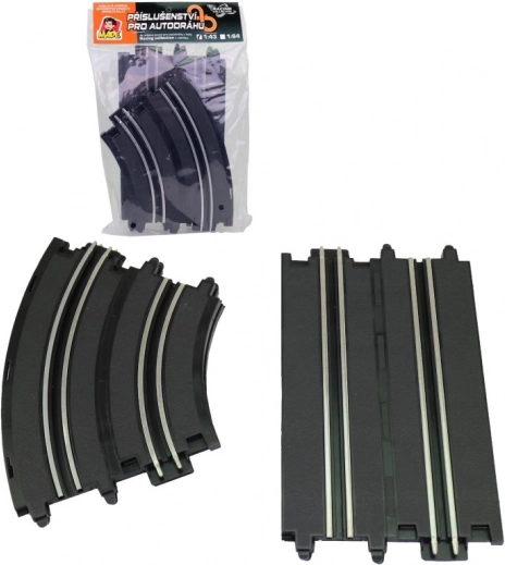 Tartalék alkatrészek a Racing kollekcióhoz 1:43 méretarányban. A csomag négy darab jó minőségű műanyagból készült pályadarabot tartalmaz, ideális az autópályád bővítéséhez és a játék szórakoztatóbbá tételéhez.