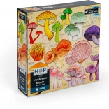 A gombák angol és latin nyelvű nevei révén a kirakós oktatási elemet is hoz. A kész kép mérete körülbelül 69 x 48 cm.