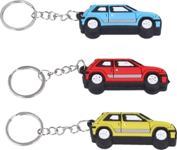 Stílusos autó alakú kulcstartó, elérhető három élénk színben: piros, sárga és kék.