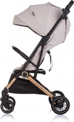 A Chipolino Pixie Tiramisu babakocsi könnyű és kompakt kivitelével büszkélkedhet, amelyet könnyen össze lehet hajtani egy kézzel és egyszerűen szállítható kihúzható fogantyúval, mint egy bőrönd. Ez a babakocsi gyorsrögzítő rugós kerekekkel van felszerelve, hátul láncfékkel a biztonságos utazás érdekében.