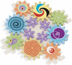 A Kaleidoszkópikus fogaskerekek építőkészlet lehetőséget ad a gyerekeknek arra, hogy egy látványos láncot hozzanak létre különböző méretű fogaskerekekkel, amelyek úgy forognak, mint egy körhinta. Összesen 38 részre oszlik, melyek közé perforált lemezek, pálcikák és színes nyomtatott matricák tartoznak. A gyermekek játék közben elsajátítják a mechanika alapvető elveit és felfedezik az optikai hatásokat, amelyek valóban varázslatosak.