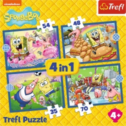 A TREFL szórakozást nyújt az egész családnak a Spongyabob Élete 4 az 1-ben kirakókkal. Minden kirakónak más a darabszáma - 35, 48, 54 és 70, ami egyedülálló lehetőséget kínál különböző készségszintek számára.