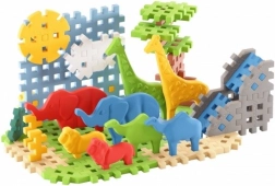 A Mini Waffle - Szavanna Állatok építőjátékkal a gyerekek saját fantáziavilágot hozhatnak létre, tele afrikai élettel. Tartalmaz 50 különböző alakú darabot, amelyek lehetővé teszik látványos elemek, mint például festői vízesés és a szavanna lenyűgöző hátterének megalkotását. Része a napsütötte oroszláncsalád, ivóhelyen tartózkodó elefántok és a távolban legelésző zsiráfok is.