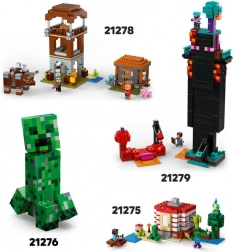 A szettben ikonikus figurák és mobok a MINECRAFT-ból: Alex, a bányász, egy pók lovashelylyel, egy csontváz íjász és egy aranyos jegesmedvekölyök. Játék után a csákány alakú modell látványos kiállítási darabbá válik a gyerekszobában.