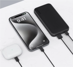 Több eszköz egyidejű töltése: Két eszköz egyidejű töltése egyszerű az USB-A és USB-C kimenetekkel és a maximális 22,5 W teljesítménnyel. Ez biztosítja, hogy minden eszköz készen álljon a használatra, ideális utazáshoz.