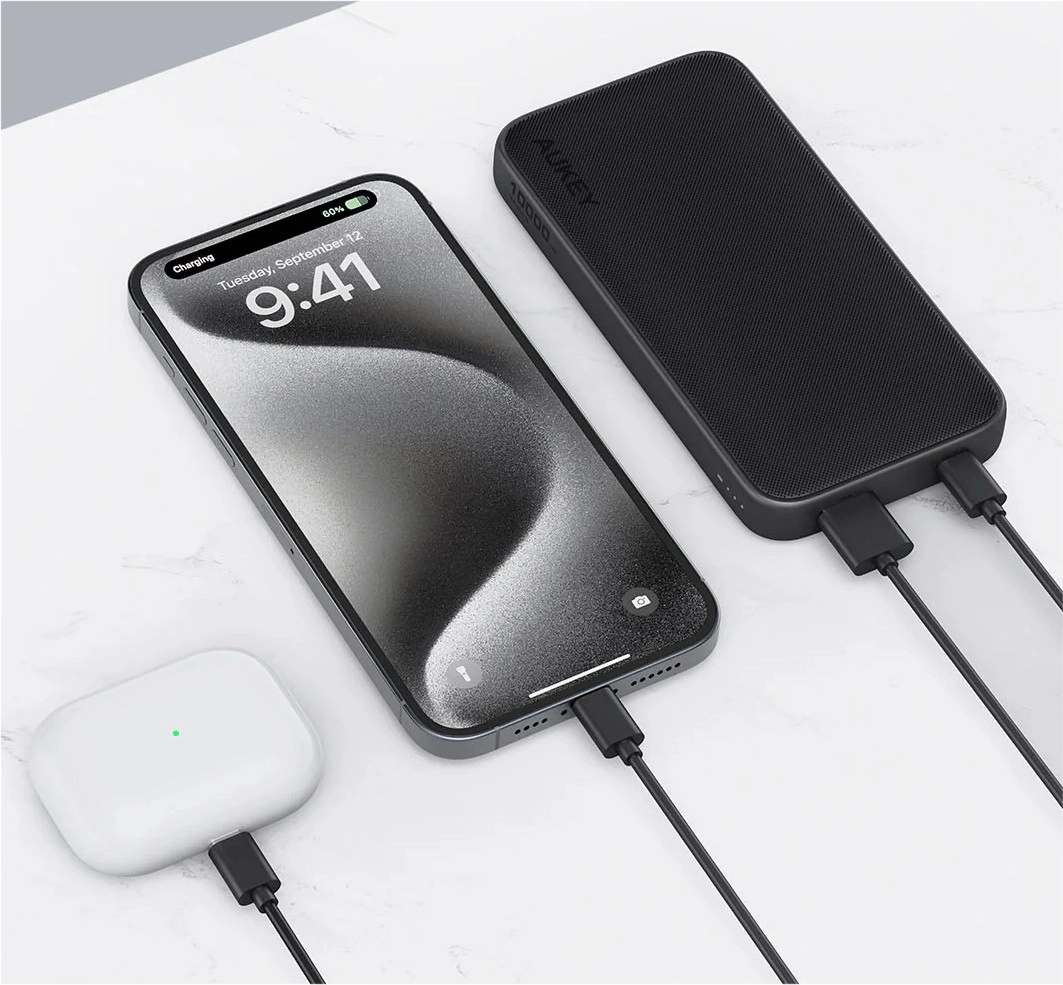 Az Aukey Spark Go 10000mAh powerbanka gyors töltést és két eszköz egyidejű töltését teszi lehetővé a két USB-A és USB-C kimenetnek köszönhetően. Nagy kapacitása miatt ideális utazáshoz.