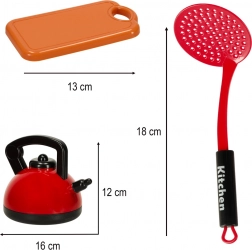 Olyan játékokat tartalmaz, mint grill, serpenyő, kanna és más hasznos kellékek, amikre a gyerekeknek szükségük van a főzős játékhoz.