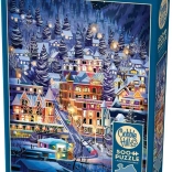COBBLE HILL Puzzle Síelős város igazi kihívást kínál a valódi rajongóknak. Az egyedi formatervezésű daraboknak köszönhetően, amelyek nem követik a standard rácsot, egyedi összeállítást élvezhet.
