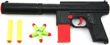 A készlet tartalmazza a pisztolyt és a puha hablövedékeket, amelyek célbalövésre szolgálnak. Ne lőj emberekre vagy állatokra, és mindig felnőtt felügyelete mellett játssz. Ideális kertbe, gyerekszobába és baráti pontossági versenyekhez.