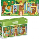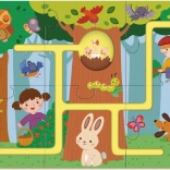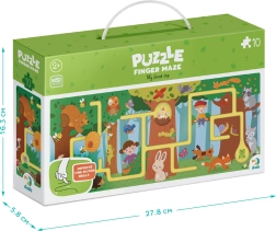 Ez a nagyszerű puzzle játékkal teli formában mutatja be az erdő felfedezését, ahol a gyermekek az ujjukkal vezérelhetik a vájatok mentén, és végigjárhatják a bájos útvonalat, tele mókusokkal, nyuszikkal, sünökkel és madarakkal. A illusztrációk varázsolják el az egész folyamatot, és a gyermekek megtanulhatják felismerni a erdei állatokat. A puzzle célja, hogy fejlessze a finommotorikus képességeket, koordinációt, figyelmet és képzeletet a kisgyermekeknél.