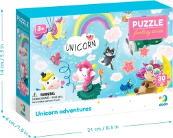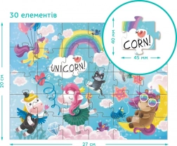 Élvezze a kirakó összeállítását varázslatos unikornisokkal és induljon egy kalandra tele fantáziával. A készlet 30 darabot tartalmaz, amelyek körülbelül 27 x 20 cm-es képet alkotnak.