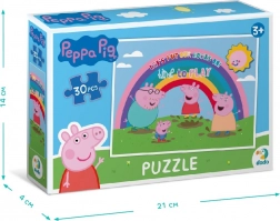 Élvezze a szórakoztató perceket a Peppa malac kirakóval: Szivárvány, ami 30 darabból áll. Tökéletes választás gyermekek számára, akik szeretik a színes képeket és a kirakós kihívásokat.