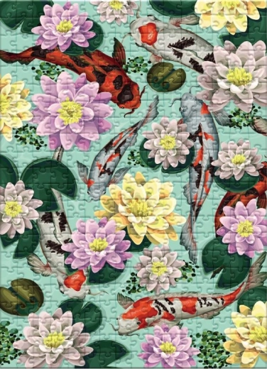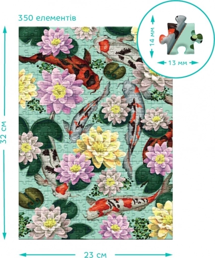 Puzzle Botanika, lótuszvirágok és koi pontyok motívumokkal, 350 darab a szórakozásért és pihenésért.