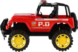 A robusztus off-road kialakítás magas futóművel és feltűnő kerekekkel magabiztosságot ad a „terepen” – legyen az gyerekszoba vagy kert. A rendőrségi megjelenés jellegzetes feliratokkal támogatja a szerepjátékot és fejleszti a fantáziát. A lendkeréknek köszönhetően elég az autót meglökni, és elemek nélkül előrehalad.