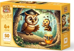 Szórakoztató és oktató kihívás - rakja ki a puzzle Bölcs Bagoly készletet, amely 50 darabot tartalmaz, mérete 48 x 34 cm.