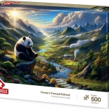 Fedezze fel az összerakás örömét a Pandamenedék egyedülálló puzzle készletünkkel, 500 darabbal, amely elkalauzolja Önt a nyugalom és remény világába, 48 x 34 cm méretben.