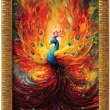 Puzzle színes páva motívummal, teljes felszereléssel, beleértve a ragasztót és a keretet, aminek köszönhetően könnyen kiállítható a falon.