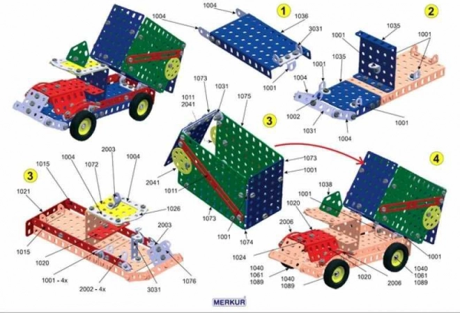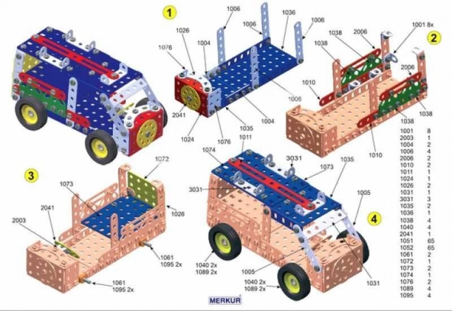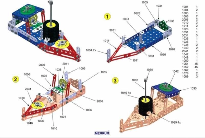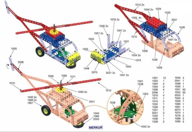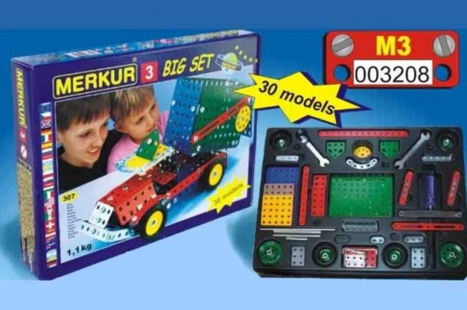 Bemutatjuk a Merkur 3 építőkészletet, amely ideális a kis mérnökök és szüleik számára. Ez a klasszikus egyrétegű készlet 273 darabot tartalmaz, beleértve szalagokat, íveket, szögeket, kerekeket és gumikat. A csomag tartalmaz csavarokat és anyákat is, amelyek szükségesek a széles körű modellek összeszereléséhez.