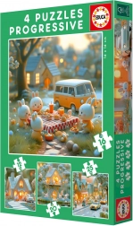 Fedezze fel a puzzle összerakás örömét ezzel az EDUCA Nyuszi város 4 az 1-ben készlettel. Ez a készlet négy különböző puzzle-t tartalmaz fokozatosan növekvő nehézségi szinttel: