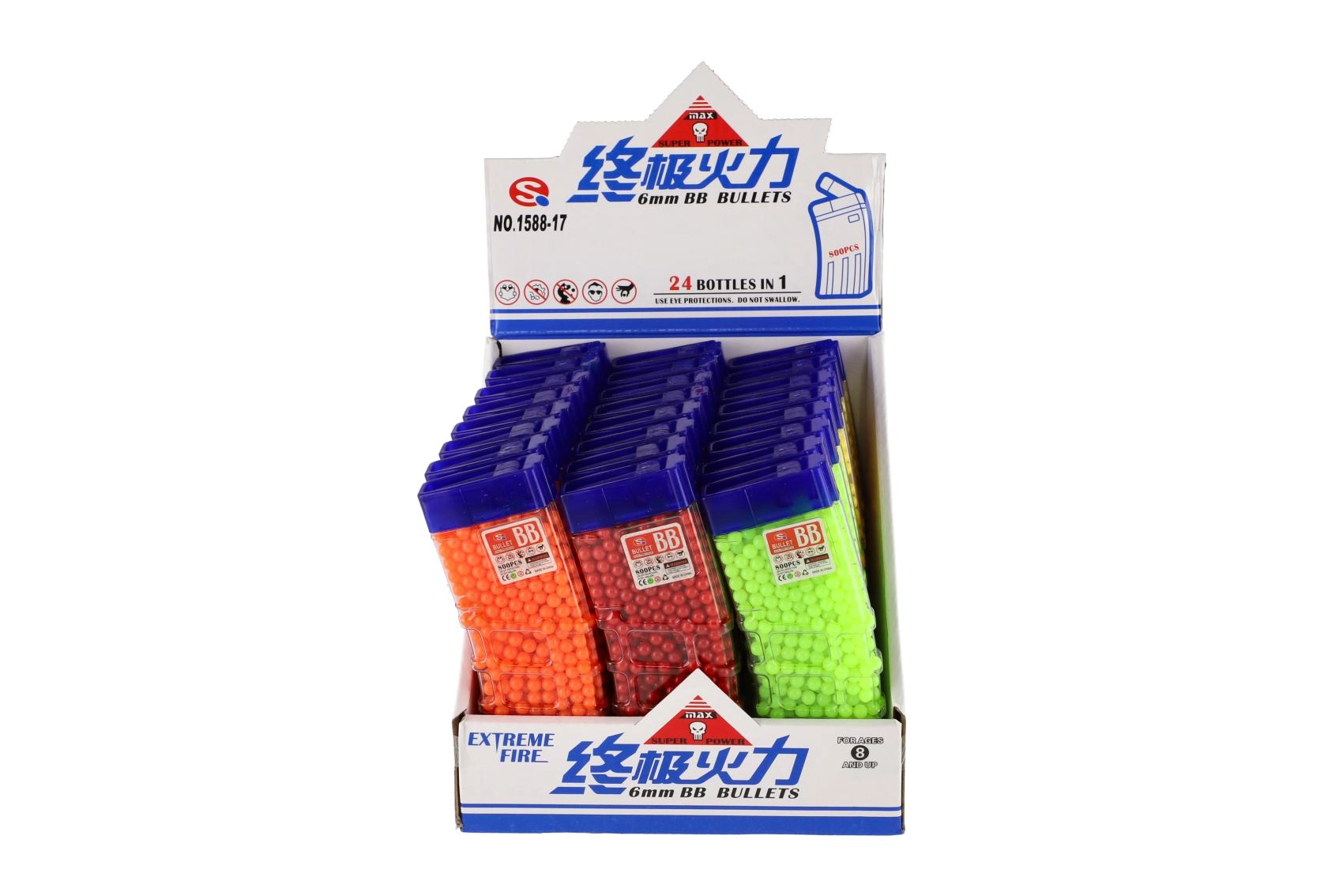 Ez az univerzális 6 mm-es golyókészlet elegendő lőszert kínál a hosszú játékidőhöz. A színes kivitel (sárga, kék, zöld, piros, narancs stb.) növeli az áttekinthetőséget és a szórakozást játék közben. Az átlátszó műanyag doboz praktikus kiöntőnyílással megkönnyíti a gyerekjátékok feltöltését, és megóvja a tartalmat a kiszóródástól.