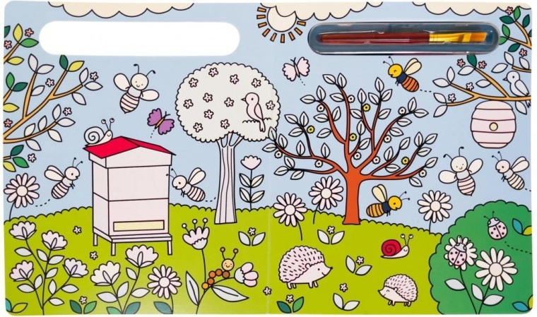 Ez az interaktív könyv szórakoztató vízfestést kínál mesés képekkel, amelyek a kert állatait ábrázolják. Csak meg kell nedvesíteni a mellékelt ecsetet, és figyelni, hogyan tűnnek elő varázslatosan a színek az oldalakon! Végtelen festési lehetőségek a gyermek finommotorikus készségeinek és szem-kéz koordinációjának fejlesztésére.Specifikációk