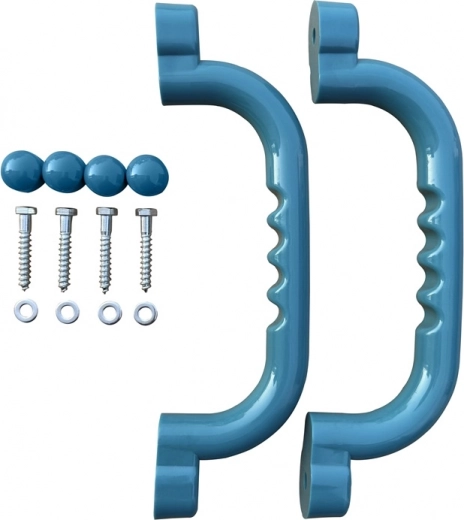 Ezek a türkiz műanyag fogantyúk arra tervezték, hogy biztosítsák a biztonságot és stabilitást a gyerek játszótereken. Masszív és tartós anyagból készültek, teherbírásuk akár 70 kg, biztosítva a megbízhatóságot és hosszú távú használatot. A csomag tartalmazza a szerelési anyagokat, így könnyű a telepítés: