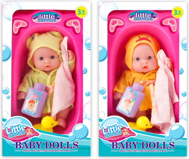 Ez a bájos készlet tartalmaz egy színes ruhás babát, amit megfürdethet a kádban. A csomag részét képezik variálható kiegészítők, melyekkel számos játéklehetőséget fedezhet fel, beleértve a béka és kacsa témákat.