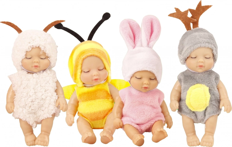 Bővítse gyűjteményét ezzel a varázslatos babával, amely mindössze 12 cm magas. Minden darab gondosan kidolgozott, különös figyelemmel a részletekre, beleértve a színes állatmintás ruhákat is. A baba ideális játékra vagy dekorációs elemnek a gyerekszobába.