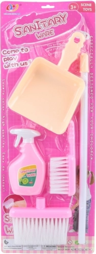 Gyerek takarítószett műanyag eszközökkel, ideális a kicsi segítőknek, akik szeretnének segíteni a háztartás takarításában.