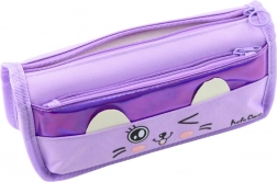 A tolltartó két praktikus, cipzárral záródó zsebbel rendelkezik – a nagy kapacitású fő rekesz tökéletes ceruzák, tollak és egyéb íróeszközök tárolására, míg az elülső oldalon található kisebb zseb kiváló apróságok, mint radírok vagy hegyezők tárolására. Aranyos macska motívum vidám arccal és fülekkel, amelyek kiemelkednek a tolltartó felületéből, karaktert és gyermekbarát bájt kölcsönözve az egésznek.