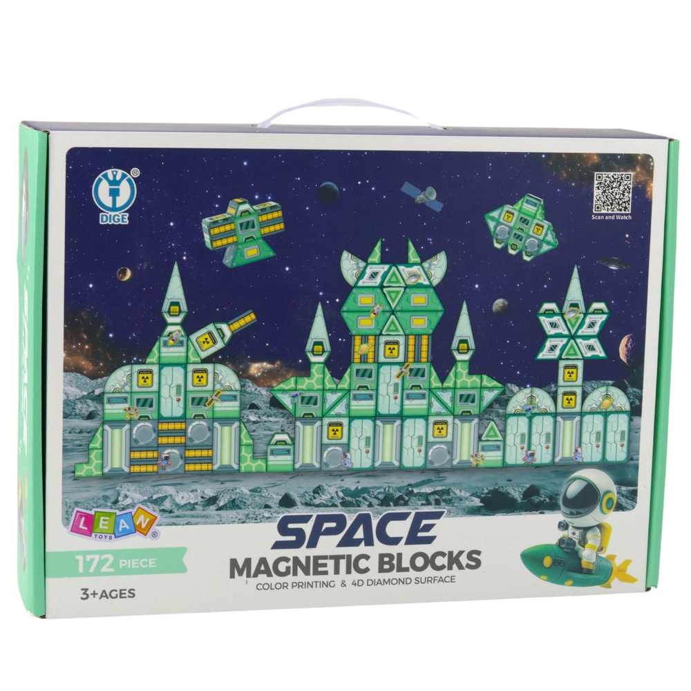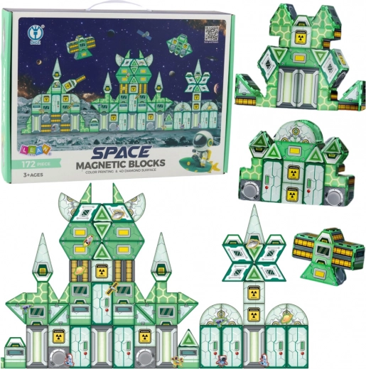 Mágneses építőkészlet Kozmosz lehetővé teszi a gyerekek számára, hogy az űr témájával inspirált kreatív játékokat játszanak. A modern dizájnnal és színekkel, valamint grafikai elemekkel minden kirakó egyedi. Ez a készlet akár 172 különböző darabot tartalmaz, amelyek háromszögeket, négyzeteket, rombuszokat, 3D paneleket és díszítő csempéket grafikával tartalmaznak.