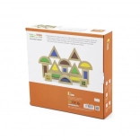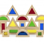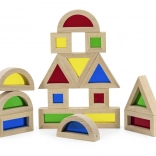 Háromszögek, négyzetek, téglalapok és félkörök támogatják a térbeli képzelőerőt és a stabil szerkezeteket rétegezésnél és rakosgatásnál.