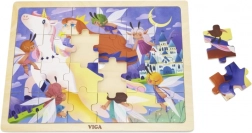 A mesemotívumú fa puzzle örömteli felfedezést nyújt a gyerekeknek, miközben fejleszti készségeiket. A nagy, könnyen megfogható elemek és a tartós fa kivitel hosszú élettartamot biztosít a mindennapos játék során is. A csomag része egy erős tábla kerettel a kényelmes kirakáshoz.