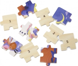 A színes jelenet egyszarvúval, tündérekkel és kastéllyal motiválja a gyerekeket a kirakásra és a saját történetek mesélésére.
