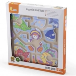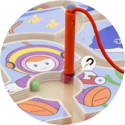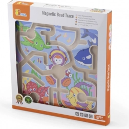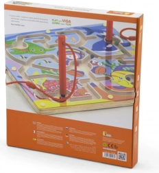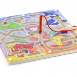 Okos szórakozás a gyerekeknek: a fa mágneses labirintus természetes, játékos módon fejleszti készségeiket. A mágneses pálcával a gyerekek színes golyókat vezetnek kanyargós utakon, miközben gyakorolják a fogást, a koncentrációt és a szem–kéz koordinációt. A biztonságosan zárt kialakításnak köszönhetően a golyók nem vesznek el, a játék pedig utazáshoz is ideális.