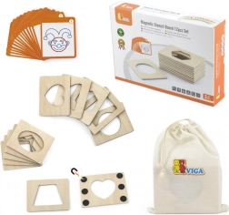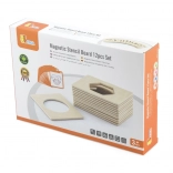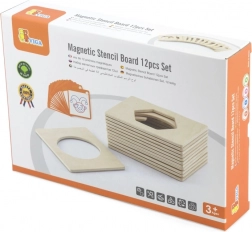 Ez az egyedülálló készlet 12 darab fa sablont tartalmaz, amelyek ideálisak 3 éves kortól. Minden sablon mágneses alapú, amely megkönnyíti a kezelhetőséget és biztosítja, hogy a helyén maradjon.