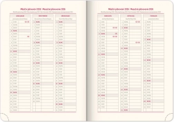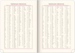- Funkcionalitás: Textil könyvjelzőt, perforált sarkokat az egyszerű tájékozódáshoz, valamint helyet személyes adatok és jegyzetek számára tartalmaz.
