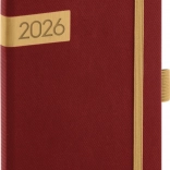 Zsebnaptár Twill 2026 elegáns és praktikus társ a mindennapokban. Bordó-arany kivitelben és évszámos dombornyomással stílust és funkcionalitást kínál, két anyag hatékony kombinációjával, lekerekített sarkokkal, tolltartó hurokkal és rugalmas gumiszalaggal.