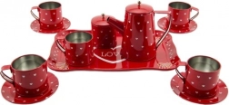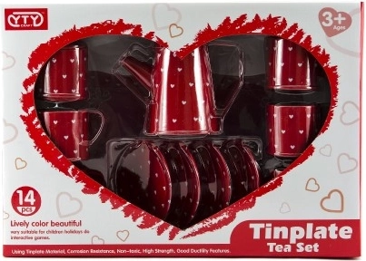 Bemutatjuk önöknek a piros bádog teáskészletet, amely minden teakedvelőt elbűvöl. Ez a 14 részes készlet a gyerekek biztonságát és szórakozását szem előtt tartva készült, 3 éves kortól. Bádogból készült, ami tartósságot és korrózióállóságot biztosít számára.