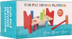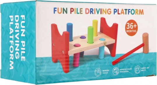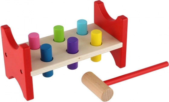 Ez az időtálló fa játék a természetes tanulást támogatja játékos formában. A gyerekek a kalapács segítségével ütik be a színes pöcköket a nyílásokba, így gyakorolják a mozgás pontosságát, a ritmusérzéket és a türelmet. A masszív fa pad és a biztonságosan lekerekített élek hosszú élettartamot és biztonságos használatot biztosítanak.