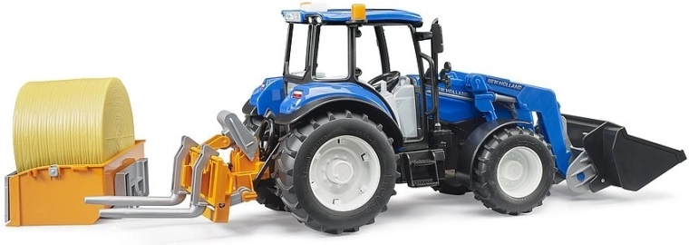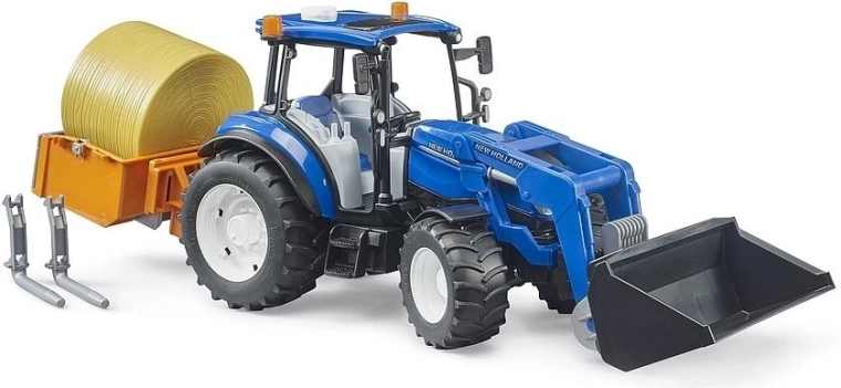 A BRUDER NEW HOLLAND T5.120 traktor sokoldalú gazdasági segítőtárs, precíz kidolgozással és tartós felépítéssel. A működő homlokrakodónak, a kiegészítő villáknak és a platónak köszönhetően a gyerekek könnyedén felrakodhatják, elszállíthatják és lerakhatják a széna bálákat vagy más anyagokat. A rugózott tengelyek és a terepes első tengely stabil haladást biztosítanak a sima felületeken kívül is.