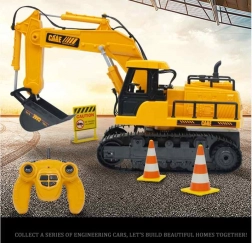Ez a távirányítású játék tökéletes mása egy igazi gépnek 1:24 méretarányban. Az intenzív színeknek és tökéletesen kidolgozott részleteknek köszönhetően a szobája könnyedén építkezési területté alakul. Az irányítást 2.4 GHz-es távirányító biztosítja. Nemcsak egyéni, hanem csoportos szórakozáshoz is alkalmas szülőkkel vagy társaikkal. A csomag tartalmaz 2 figyelmeztető jelet és 2 bóját, amelyek növelik a játék vonzerejét.