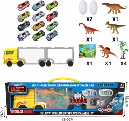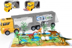 Nagy szállító, dinoszaurusz figurák, autók, díszletek, összecsukható alátét