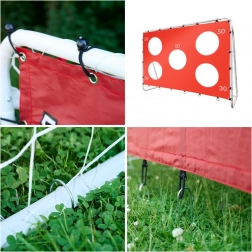 A kapu különböző nyílásokkal rendelkezik a precíziós hálón, amelyek pontszámra vannak kijelölve, ami fejleszti a lövési technikát és ösztönzi a sportos versengést. Ne hagyja ki a lehetőséget, hogy a foci hangulatát elhozza a kertjébe a gyerekek megfelelő méreteivel és időjárásállóságával.