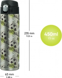 Ez a remek termosz könnyen kezelhető a gyerekek által már a kisiskolás kortól kezdve, köszönhetően az intuitív nyitásnak és a praktikus szilikon szívószálnak. Térfogata 450 ml, és több játékos designban elérhető, amelyek illeszkednek a gyerekek egyéb iskolai felszereléseihez.