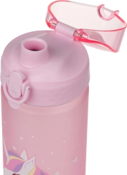Ez a 500 ml-es tritán palack nagyszerű társ az iskolásoknak és sportolóknak. A zárható fedél biztosítja, hogy egy csepp ital sem szivárog ki, és használata egyszerű és intuitív. A fogantyú révén kézben tartása kényelmes.