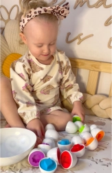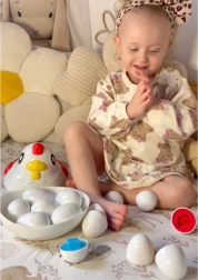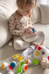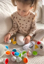 egy multifunkcionális oktatójáték, amely játék közben fejleszti a gyerekek kulcskészségeit. Játéktojások készletét kínálja, amelyeket a gyerekeknek megfelelő nyílásokba kell helyezniük, ezzel tanulják meg a
