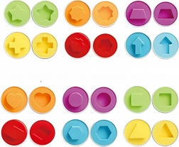 - - Minden elem egyedi formával és színnel rendelkezik, ami segíti a gyereket azonosítási és párosítási készségeik fejlesztésében.
